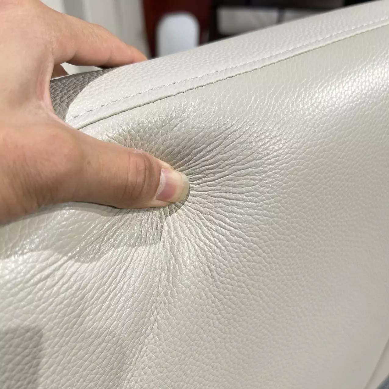 1. Materials: The headboard contact surface features thickened top-grain cowhide. The ultra-thin, beige-gray headboard offers optimal dimensions, with the bed’s total length under 2.1 meters—ideal for customers in small apartments who want a soft bed. + High-density resilient foam + Russian larch frame + 2.5 cm thick metal legs