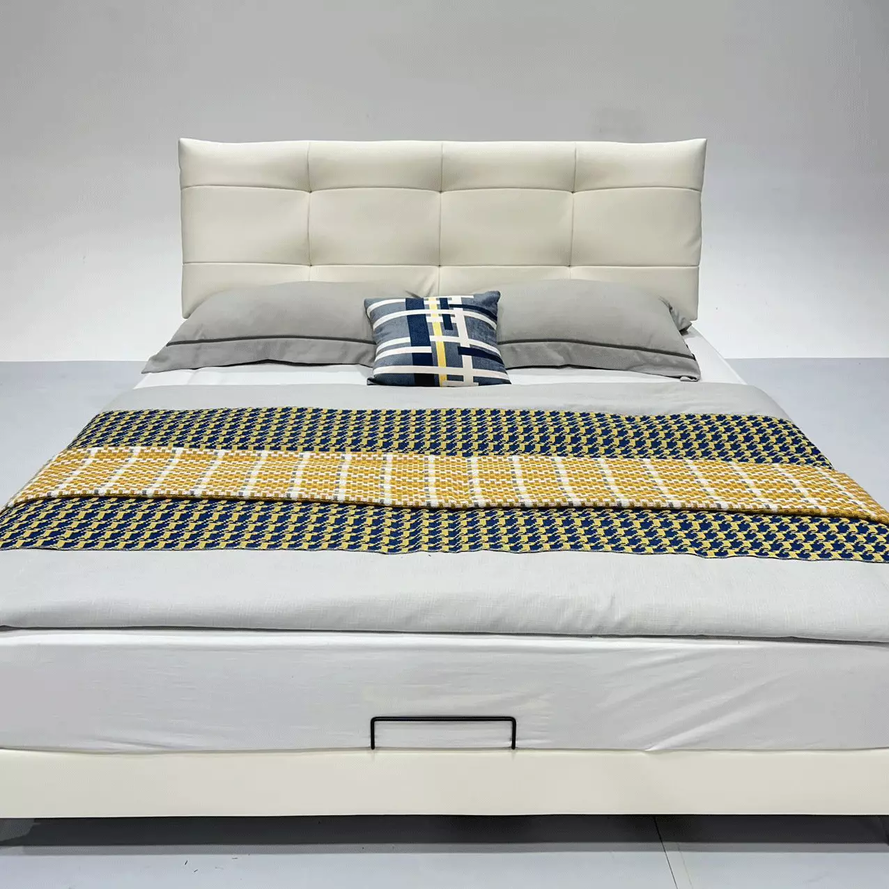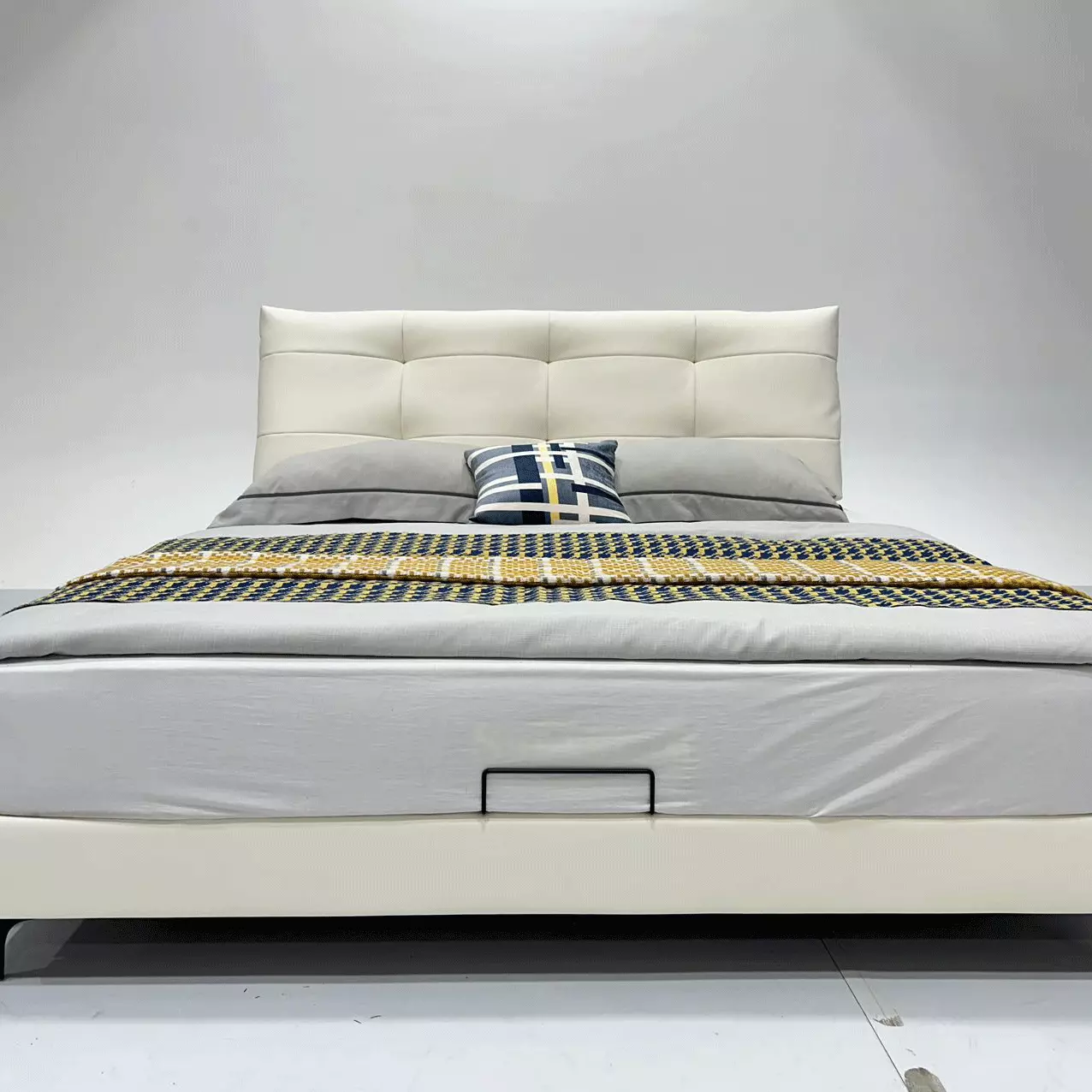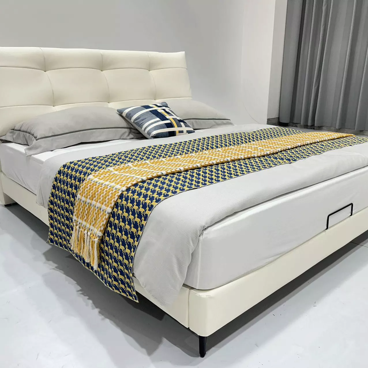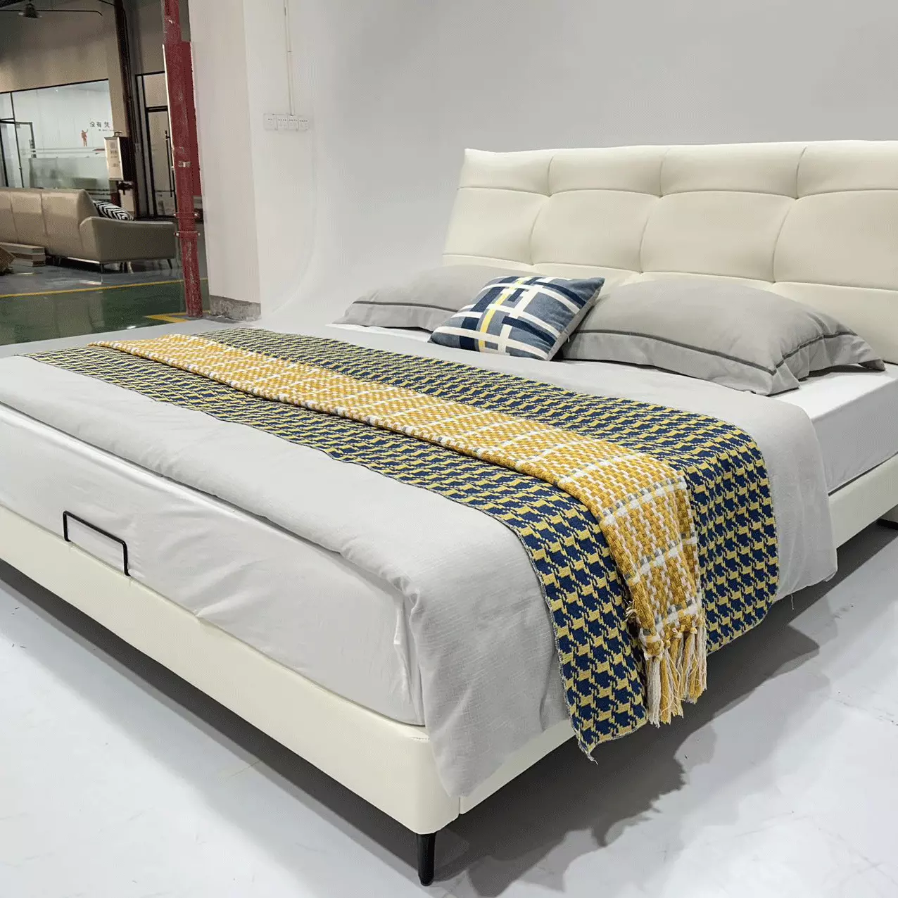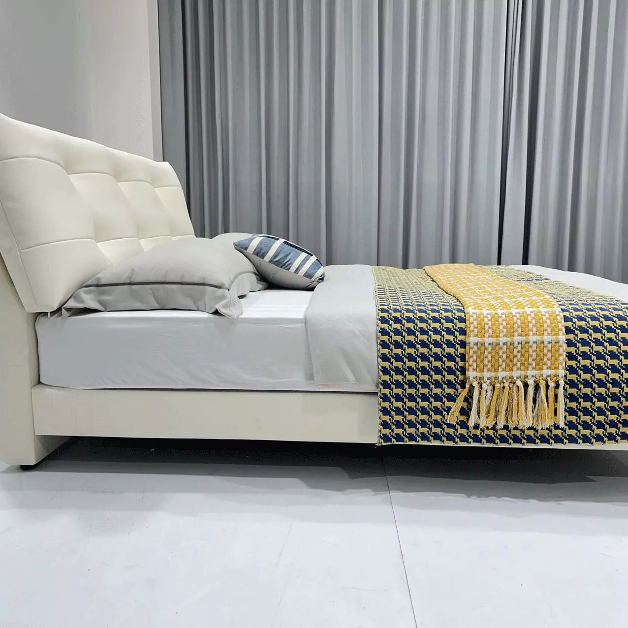 1. Materialer: Hovedgavlens kontaktflade har en fortykket top-korn kohud. De store beige hynder, fyldt med dun og silke-bomuldsblanding, giver enestående komfort. Rammen er lavet af russisk lærk.